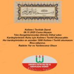 06.11.2025 Cuma Akşamı Dergahlarımızdan Ahirete İrtihal eden tüm kardeşlerimizin Ruhu için Kelime-i Tevhid olunacaktır.